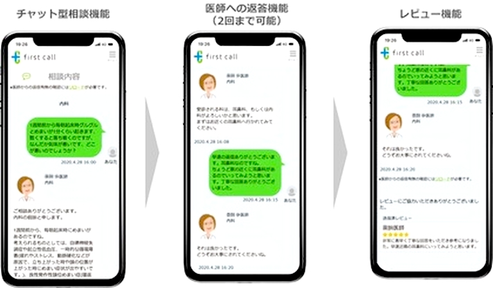 法人向けに産業保健支援サービス「first call」を提供。「オンライン医療相談」「オンライン産業医」「ストレスチェック」によ
